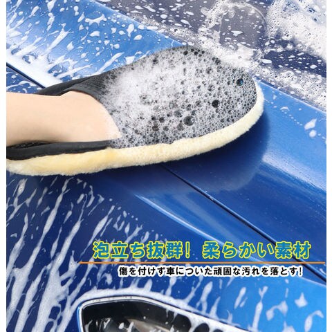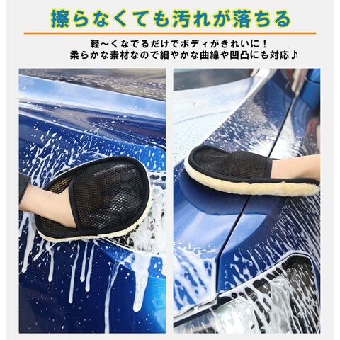 【洗車で愛車を傷つけない!】 手洗い洗車の必需品。ふわふわの羊毛のムートン素材で驚きの細かな泡立ちを実現! 軽くなでるだけでボディがきれいに! スポンジと違い砂を引きずらず、毛の部分が大量に水分を吸ってくれることで水のクッションを作りキズを軽減してくれます。柔らかな素材なので細やかな曲線や凹凸にも対応【あらゆる場面で使用OK!】 乾拭き、水拭き、シャンプー、ワックスがけ、車内はもちろん ホイール、バンパー、ミラーなどあらゆる場面で使用可能。車やバイクのお手入れだけでなく、フローリングや家具のお手入れにも