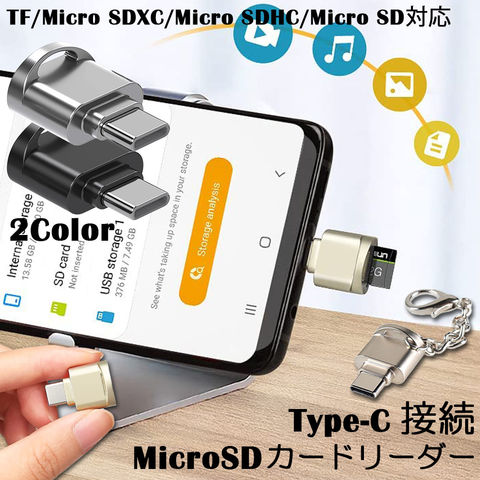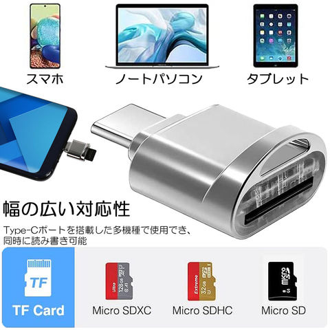 【操作簡単】ドライバ不要、TFカード(micro SDカード)を挿入し、TYPE-C機器に挿しこむだけで簡単に使えられます。最大:128Gまで対応。