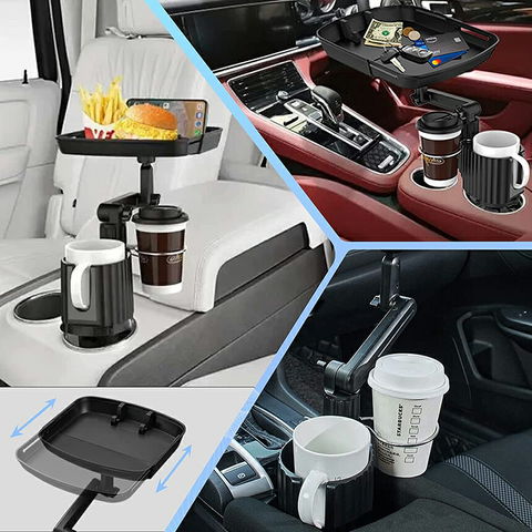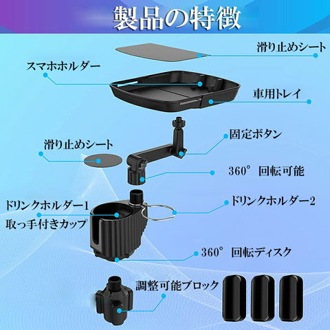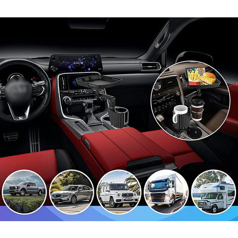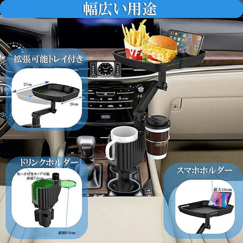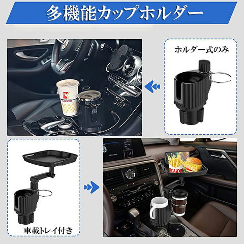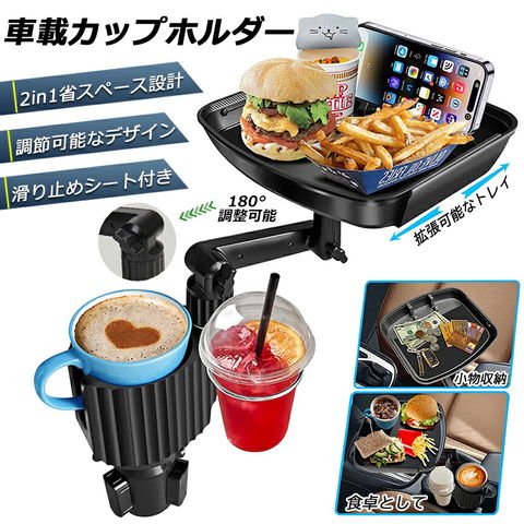 ドリンクホルダー トレイ車用 車載トレイ 車用トレイ スマホスタンド カーテーブル 2in1 差し込み式 多機能 360°回転 スマホ 小物入れ 車載 滑り止めシート 収納 車内 車用 回転 ダブルカップホルダー 内装用品 カー用品 車用品 アクセサリー