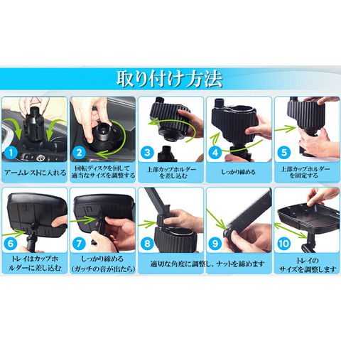 ●車内での携帯電話の置き場所に困った経験はございませんか?簡単にテーブルが設置できるドリンク穴取り付け式の車内用ミニテーブルです。 ドリンク穴1個でテーブルプラスドリンク置き場2個増設できます。●ドリンクホルダー部分に本体を差し込み、矢印方向に回すだけで簡単に設置完了!固定部分は滑り止め加工が施されており、がっちりと固定できます。未使用時は取り外しアーム部分を取り外すことでコンパクトに収納いただけます。