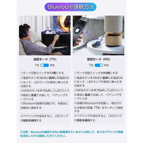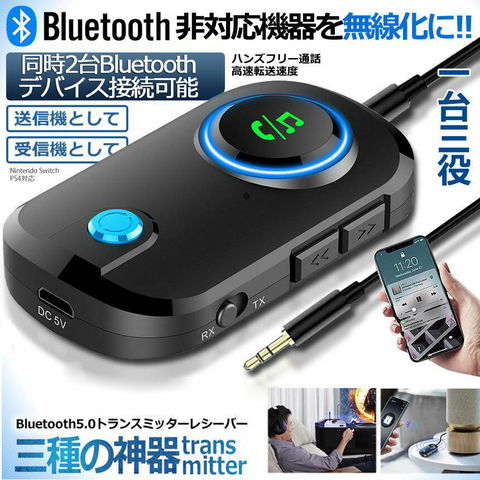 トランスミッター レシーバー Bluetooth 5.0 送信 受信 音声アシスタント ハンズフリー通話 2台同時接続 低遅延 大画面 車 テレビ イヤホン スマホ PC パソコン スイッチ オーディオ適用
