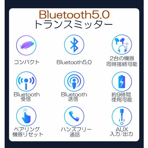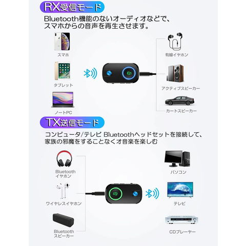 【一台三役】Bluetooth5.0トランスミッター&レシーバーは送信 /受信 /音声アシスタント(ハンズフリー通話)3 in 1 のBluetooth送信・受信機です。本機があれば、ワイヤレス接続非対応のCDプレーヤーなどのデバイスを、Bluetooth対応機器としてワイヤレスで使用できる。【低遅延高音質・2台同時接続】最新バージョンBluetooth5.を搭載し、低電力だけでなく、2倍のデータ転送速度を実現! より高速に多くのデータを送受信し、なおかつ高音になりました。さらに、2台同時接続も可能。ご家族、ご友人と一緒にCD並の高音質を楽しめます。充電式内蔵バッテリーは、フル充電の状態から9時間連続再生できます。 オーディオアダプタも搭載されているので、充電しながらストリーミング再生をすることも可能です。 一度設定すれば、後は手間のない使い方もできます。