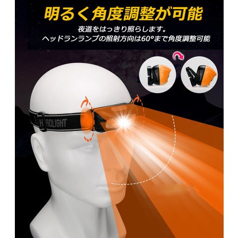 明るさは300ルーメン、ヘッドライトの先端は照射角度(60度まで)調整ができますので、足元だけではなく、照射周囲を広く照らし、危険がよく避けられます。