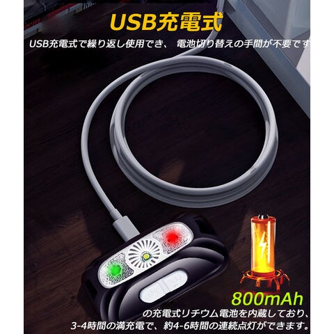 高品質800mAHバッテリーを内蔵して、僅か2時間で完全充電となり、点灯時間は低輝度で12時間、高輝度で5時間に達ます。充電式で繰り返し使用でき、電池切り替えの手間が不要です。