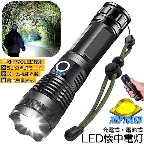 【4個セット】懐中電灯 ledライト XHP70 ハンディライト 5モード調光 強力 防水 USB充電式 電池式 LCD残量表示 ズーム機能 Type-C充電式 ledライト フラッシュライト led sosライト 明るい ハンディライ ト 登山用品 防災 停電対策 夜釣り ライト