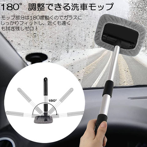 【180°調整できる洗車モッブ】ガラス面によりフィットする!目に見えない細かいホコリがしっかりキャッチします。車はもちろん、お部屋、家具などのお掃除にも活躍。