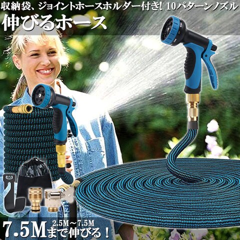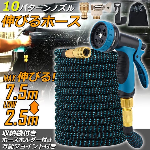 ホース 散水ホース ホースリール 伸縮ホース 伸びるホース 洗車ホース 3倍に伸びる 10パターンノズル 超軽量 伸びるホースノズル 散水ノズル コンパクト収納 洗車 ガーデニング 庭 ベランダ 玄関 散水 大掃除 収納袋 付き