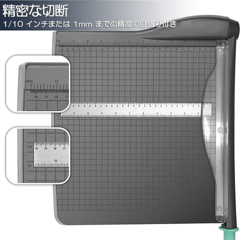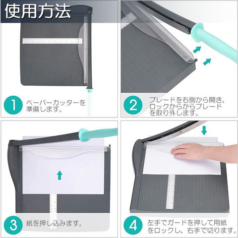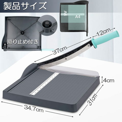 【安全な操作】保護用の透明なガードは、鋭い刃から指を保護し、用紙のロック機能も備えています、様々なサイズの用紙をしっかり固定でき、ズレずにカットします。※本製品サビ防止などのため、オイルがついております。ご使用前に、手元注意しながら刃&本体のオイルを拭き取って下さい。※ご使用するするとき手元は十分お気を付けください。