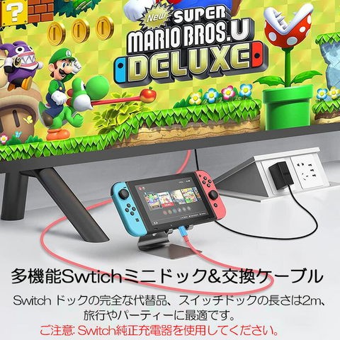 【4K解像度&高画質】本製品はHDMIハイライトで、4K@30Hzの最大解像度に達します。クリアで鮮やかな映像を提供します。Switch/パソコン/タブレット/スマホをHDMIポートを持つのテレビ、モニター、プロジェクターなどの機器に接続できます。遅延なく快適にプレイできて、よいよいゲームを楽しめます。(注:出力デバイスが4Kをサポートしていることを確認する必要があります、スイッチは1080Pのみをサポートします。Switchドックはキャプチャーボードには対応していません。Switch純正のアダプターを使用してください。)【充電ポート搭載&PD100W急速充電】スイッチ ドックは PD100W充電チップを搭載し、充電時間を大幅に短縮し、高速充電を実現します。充電完了した場合は自動的に電源が切れ、急速かつ安全な充電を提供することができ、PD充電ポートはデータ伝送機能が備えないことをご注意ください。(注意:製品使用時にはtype-C端子の接続が必要)