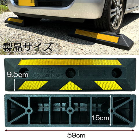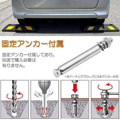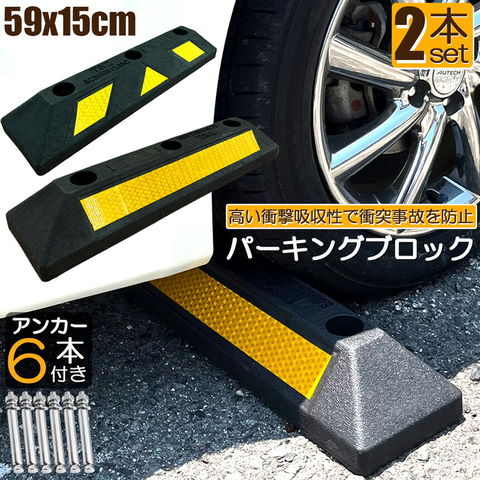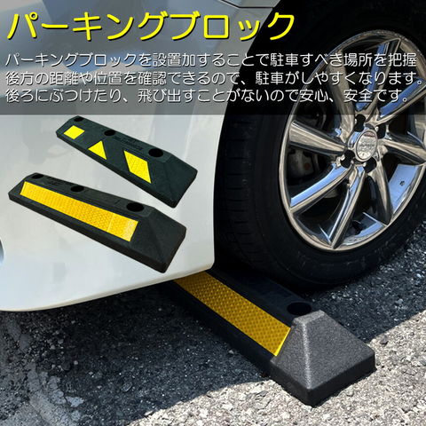 【2個セット:2個入り】パーキングブロック 2本セット 車輪止め ゴムブロック 反射板付き 車止め カーストッパー タイヤ止め 衝突防止 駐車場 駐車スペース 輪止め タイヤブロック 車庫 駐車 ガレージ パーキング 固定アンカー付き