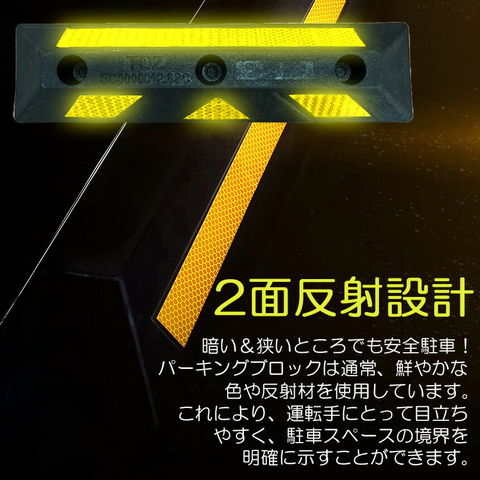 【2面反射】見やすいブラックカラーと2方向付いた黄色の反射シールが暗い場所での駐車をサポートします。これにより、運転手にとって目立ちやすく、駐車スペースの境界を明確に示すことができます。【安心安全】車庫や、駐車場に設置する、駐車時の車両への衝撃による損傷を軽減。 後ろの壁や障害物を気にせず駐車できます。