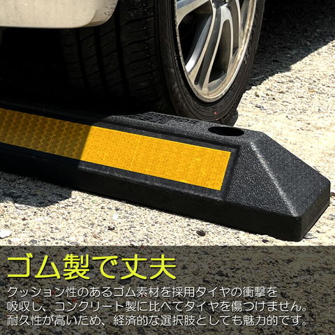 【タイヤにやさしい】弾性と強度を備えたゴム素材を採用、ゴム製なので、コンクリートや木製のストッパーよりタイヤに優しいです。