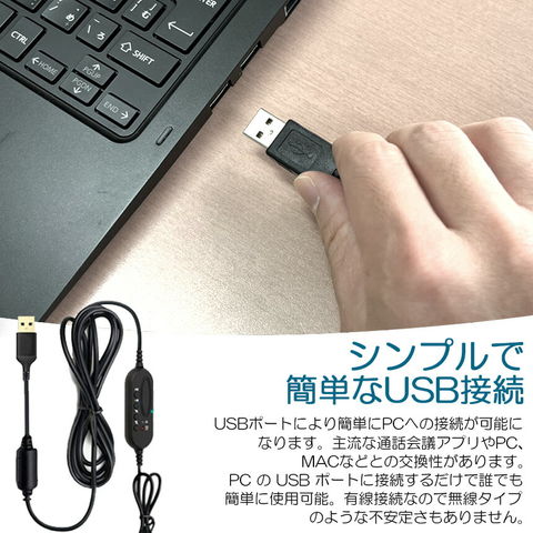 【簡単USB接続】USBポートに接続するだけで、すぐ使うことができるヘッドセットです。有線接続なので無線タイプのような不安定さもありません。【高音質マイク】幅広いヘッドサイズに適応するようにヘッドバンドでの調整が可能です。 柔軟性のあるムーブマイクにより一日中装着しても快適お使いできる超軽量USBヘッドセットです。