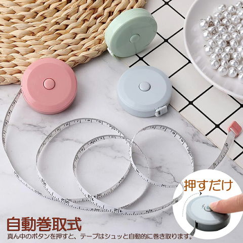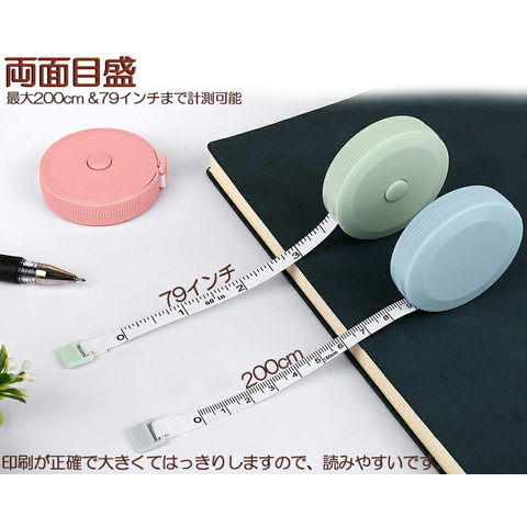 メジャー巻き尺 洋裁 裁縫 定規 巻き尺 テープメジャー 2m 200cm 79inch 4カラー選べる バスト ウエスト 測定 インチ センチ メジャー 服 巻尺 服 布メジャー 両面目盛 オートメジャー 巻取りボタン付き ロングメジャー 計測 手芸 軽量 胸囲測定