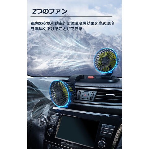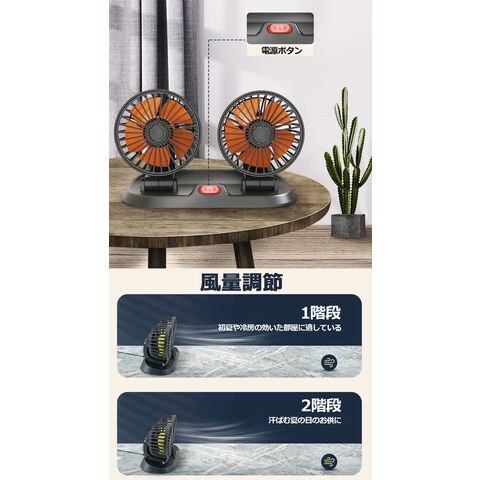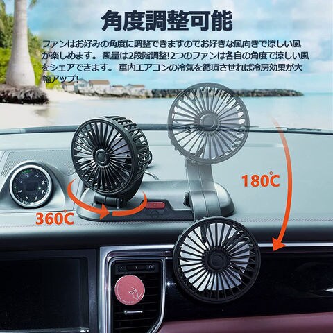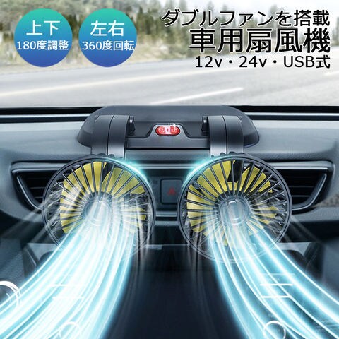 扇風機 車載扇風機 車用扇風機 車用 360度回転 5枚羽根 USB 12v/24v仕様 ダブルフ 熱対策 電動ファン 低騒音 風速風量調節可能 小型扇風機 車内 シガー 循環 省エネ暑さ対策 車中泊 蒸れる 暑い 汗 涼しい ファン シガーソケット 熱中症対策
