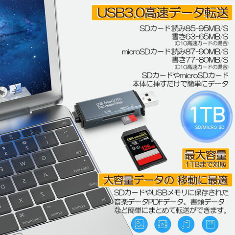【ポータブルで使いやすい】軽量かつコンパクトなデザインで、持ち運びに便利です。どこへでも簡単に持ち運べるため、旅行やオフィスでの作業、家庭での使用に最適です。また、コンパクトなデザインでデスクスペースを取らず、場所を選ばずに設置できます。【USB3.0高速転送】USB 3.0カードリーダーで、高速で転送ができます。最大5Gbpsの転送速度で、写真、ビデオ、およびその他のファイルを素早く転送できます。USB3.0 SDカードリーダーとしてUSB 2.0 カードリーダーと比較して10倍以上の速度を誇り、安定したデータ転送を実現し、使いやすいマイクロsdカードリーダーです。