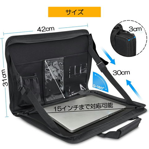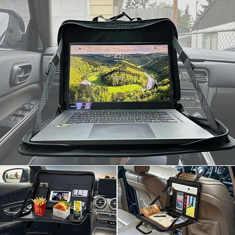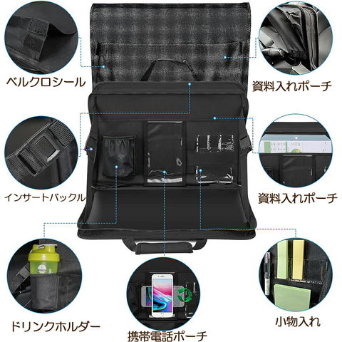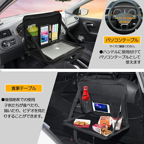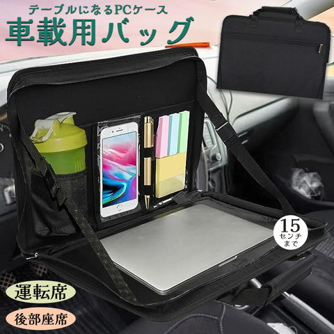 【PCケースとして使用可能】トレイだけでなく、PCケースとしても使用できます。内部にはペンや書類、ドリンクホルダーを収納する設計が多数あり、車内での仕事をより便利にします。 15インチ以内にノートパソコンを配置できます。