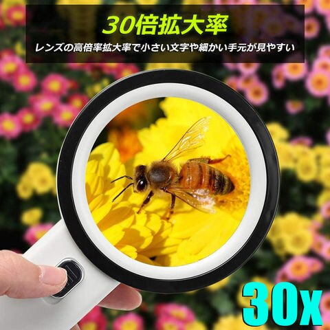 【理想的な拡大鏡】: 本、新聞、雑誌、地図、電子機器、ミニチュア、薬瓶、趣味、工芸品などの細かい部分を観察するのに最適です。【画像をより鮮明に】: 硬くて傷つきにくい機能を備えた30倍の拡大レンズ、高い透明度で、歪みのない鮮明な視界を提供します。
