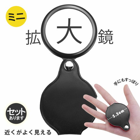 【ケース一体のミニ拡大鏡!】あったら便利な拡大鏡のミニサイズなので、気軽に持ち運べ、机にポン!とおいていても邪魔にならず、とっても便利です。