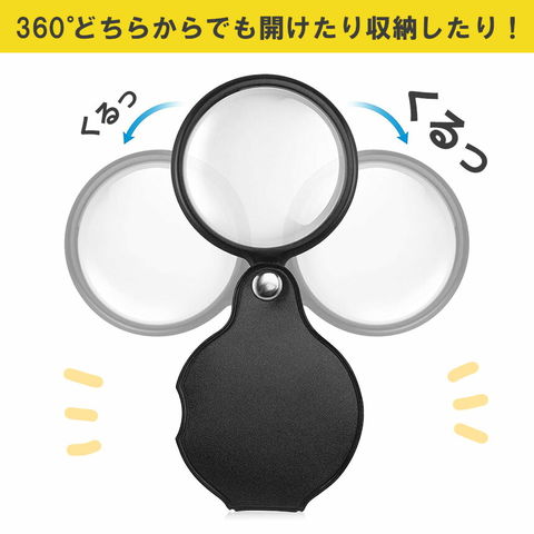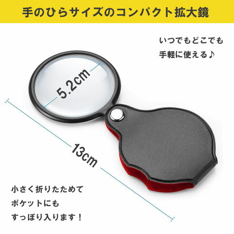 約5cmのミニ折りたたみ拡大鏡、コンパクトで持ち運びが簡単!必要なときはレンズ部を引き出すだけで、すぐにご使用になれます。