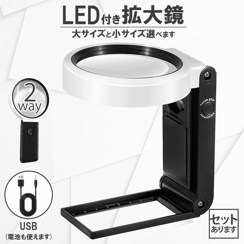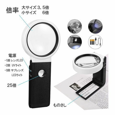 【2個セット】拡大鏡 LED ルーペ LED付き拡大鏡 虫眼鏡 レンズ2種類 手持ち LEDライト UVライト 6倍 3.5倍 25倍レンズ 軽い 持ちやすい 折りたたみ式 USB 電池式 読書 精密作業 プラモデ