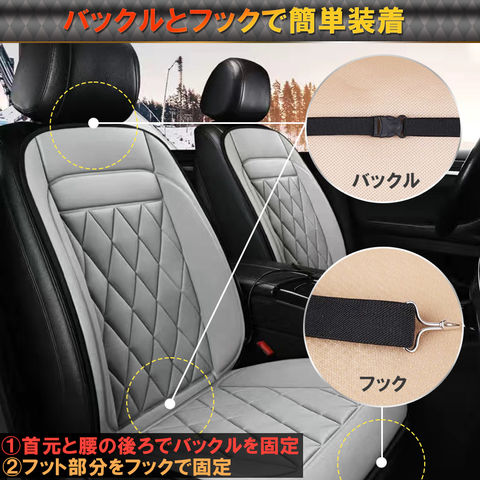 バックルとフックで簡単取り付け!取り付けが簡単なので、使わないとき、しまっておきたいときもすぐ取り外せます。電源もシガーソケットから取れるので、電池切れ等の心配は一切ございません。滑りにくい底部採用で滑りにくく、座面から動きにくいです。