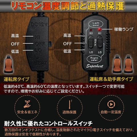 カーシート ヒーター ホットカーシート 12v車用 シートヒーター 車用 即暖 シートヒーター シートカバー シガー 電源 12V シガーソケット 座席ヒートクッション 取付簡単 運転席 助手席 防寒対策 暖房 幅広い車種に対応