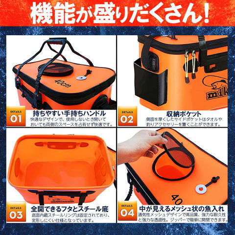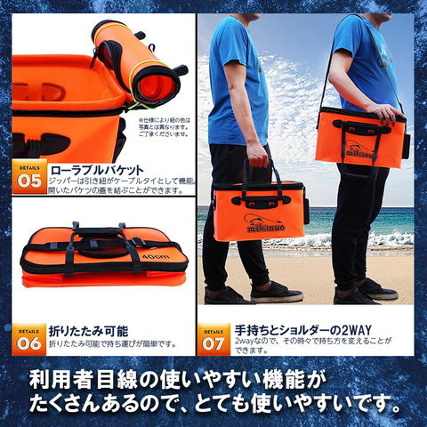 釣具をいれたり、魚、水をいれる事ができる便利な釣りアイテムです。