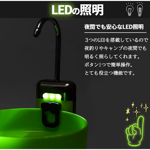 LEDライト付きですので、アウトドアや夜間でも手元を照らすことができ、とっても便利♪