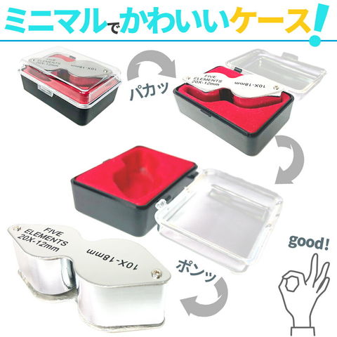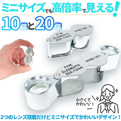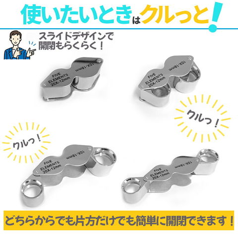【小さくても高倍率!10倍&20倍のデュアルレンズジュエリールーペ!】ルーペはスライド式でクルっと簡単開閉!小さなケースに小さなボディー、だけどしっかり高倍率で高耐久で優れもの♪
