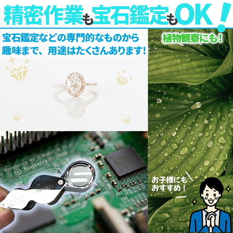 精密な作業や日常生活、動植物の観察など様々な場面で活躍します。宝石の鑑定、印刷物の校正、校閲などにも対応できます。