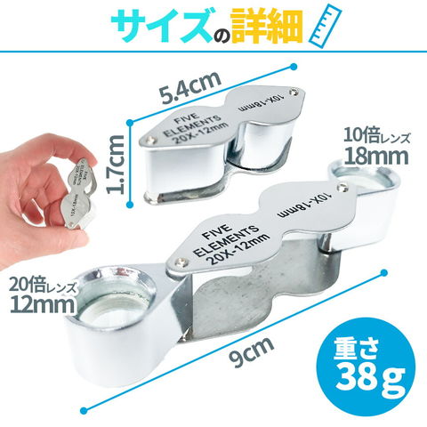 レンズ直径:10倍1.8cm、20倍1.2cm