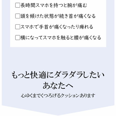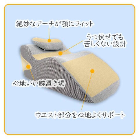 アームサポート、ウエストサポートでうつ伏せ特有の苦しさを軽減。うつ伏せでも腰痛や肩こりがおきにくい設計となっており、長時間ごろごろするのに向いてます。