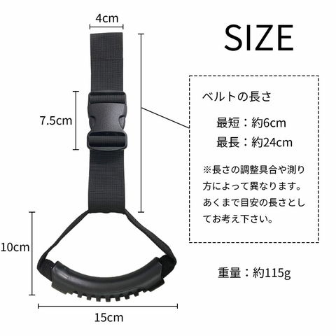 装着部分からグリップまでのベルトを調整し、長さを自由に変更できます。
