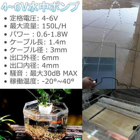 【4個セット】水中ポンプ 小型 ミニポンプ USB接続 汲み上げ 水ポンプ 給水ポンプ 排水ポンプ 循環ポンプ 空焼き防止 水陸両用 静音 水槽 水 ポンプ 排水 循環ポンプ 噴水 池 給水器ポンプ 最大揚程1.1M DC4V-DC6V 吐出量150L/H