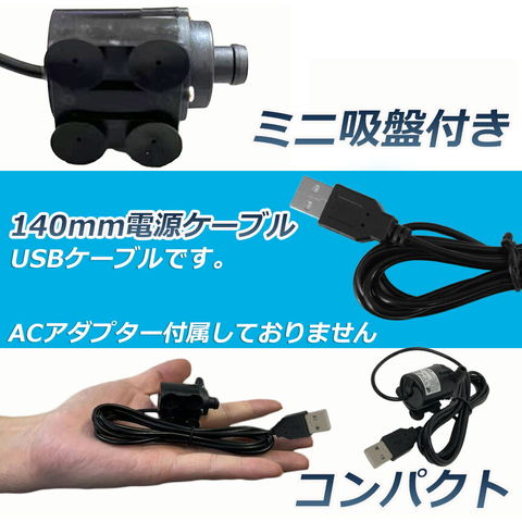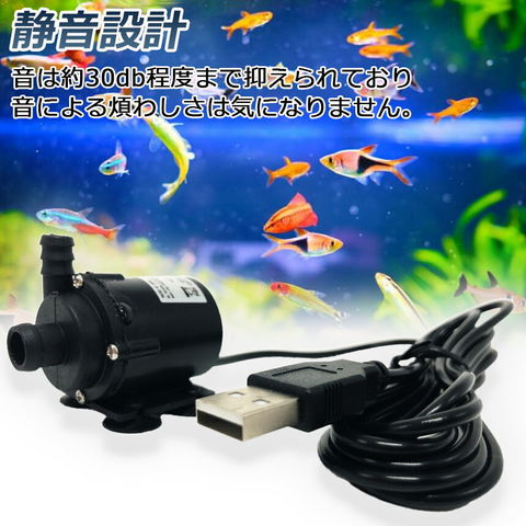 【商品仕様】USBコード(アダプター無し)、 作動電圧:DC4V~6V、電流:0.6~1.8w、最大吐出量:150L/H(揚程0mの場合)、最大揚程:1.1M、コードの長さ:1.4メートル、USB接続タイプ、※ACアダプターは付属しません。【水陸両用】水中ポンプは二つの水ノズルが設計されており、水中、あるいは陸上での使用可能も可能になります、製品分解可能です、お手入れの時も簡単です。
