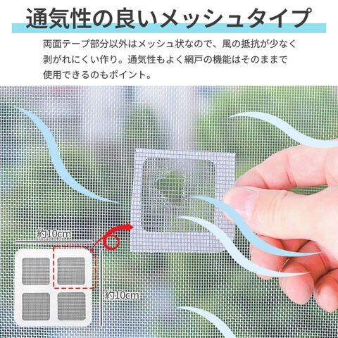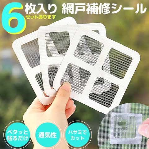【2個セット】網戸 補修 補修シート シール 補修テープ 10×10cm 6枚セット テープ 網戸修繕テープ 網戸補修テープ パッチ メッシュ 直す 修理 修繕 修正 穴 ほつれ 破れ 傷 あみ戸 虫対策 簡単 貼るだけ ハサミでカット DIY ポイント消費