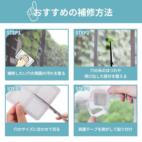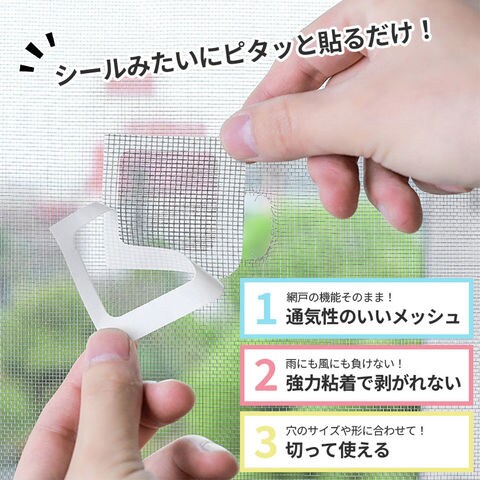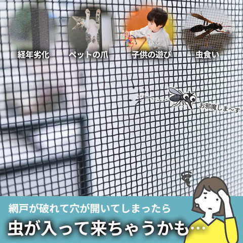 【網戸の補修に!】経年劣化やペットの爪とぎ、子供の遊び、虫食いなどの原因で破れて穴が開いてしまった網戸を簡単に補修できます。