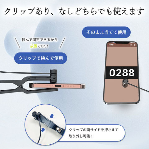 スマホに挟んで固定できる便利なクリップ式!