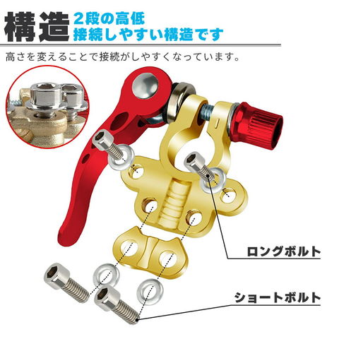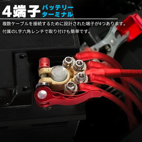 【4個セット】バッテリーターミナル 自動車 複数端子 接続 カーバッテリーターミナル 電池ターミナル 亜鉛合金 銅メッキ 錆び防止 特殊メッキ仕上げ 交換用 クイックリリース 端子正負 L字六角レンチ付き
