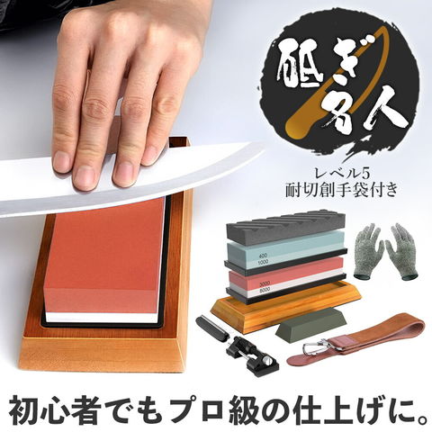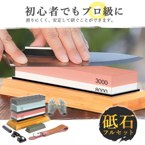 【4個セット】砥石 研ぎ石 包丁 両面砥石 #400 #1000 #3000 #8000 耐切刃手袋 革砥 刃物砥石 包丁研ぎ砥石 包丁研ぎ器 中砥石 仕上砥石 包丁研ぎ 包丁砥石 刀補助具 竹台座 ゴム