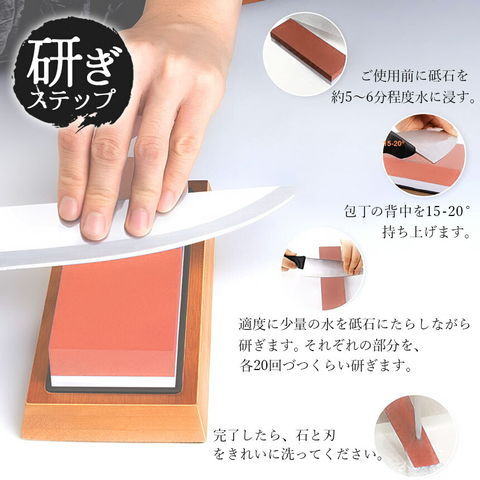 砥石の表面をきれいにできます。5分ほど砥石を水につけた後、表面を磨いて下さい。