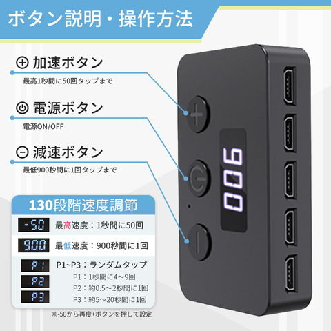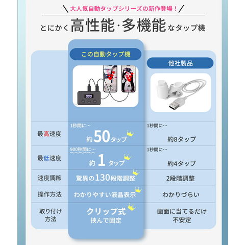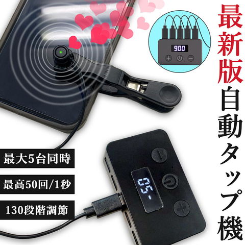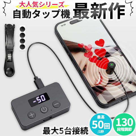 【本体+タップヘッド】高速連打 自動タップ機 スマホ 連打 自動 タップ 自動タップ 連打器 オートクリッカー スマートフォン 連続 放置 ゲーム スマホゲーム ソシャゲ クリッカーゲーム ライブ配信 いいね 配信 ハート クリップ 速度調整 挟む iPhone iPad Android SNS