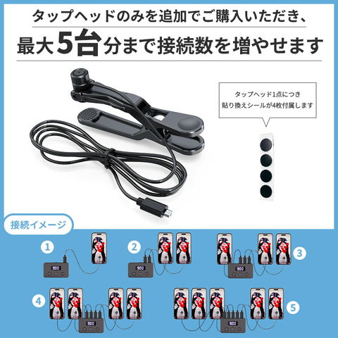 追加用のタップヘッドのみもご購入いただけるので、お手持ちのデバイス数や用途に合わせてお好みでお選びください。