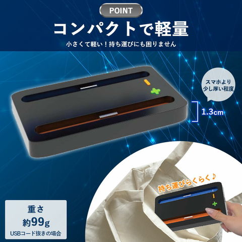 スマホより少し厚みがある程度で軽量なので持ち運びもとてもしやすいです。