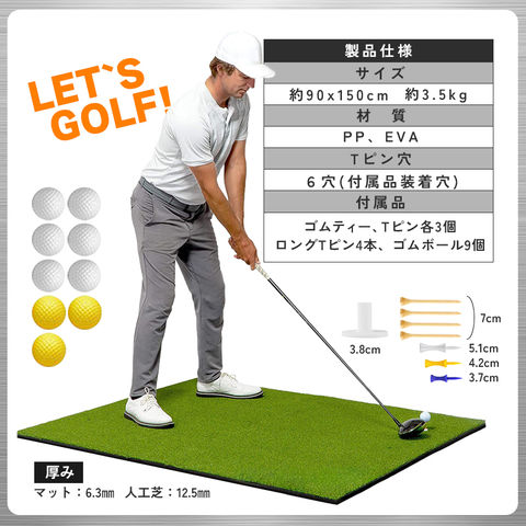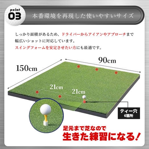 サイズは約90cm×150cm。しっかりとした面積があるため、ドライバーからアイアン、アプローチまで幅広いショットに対応。スイングフォームを安定させたい方にも最適です。