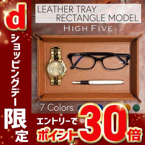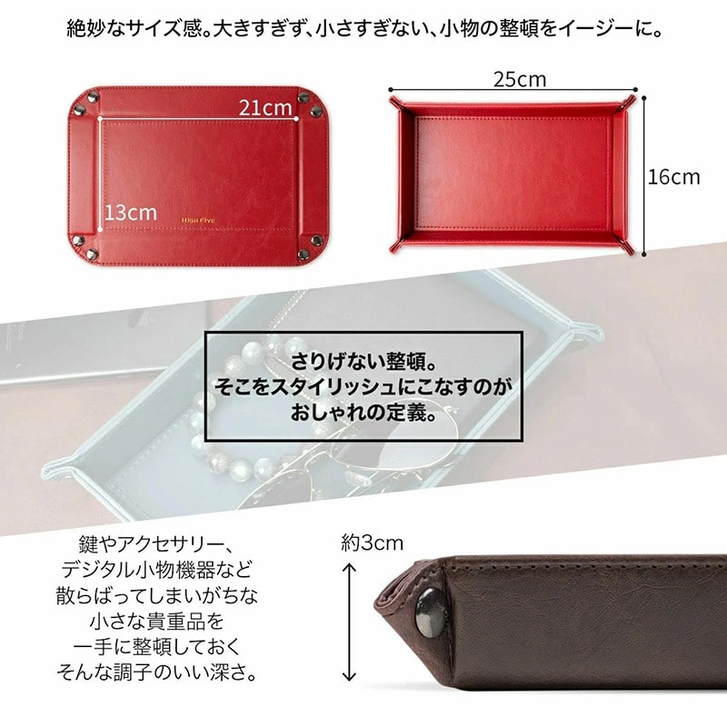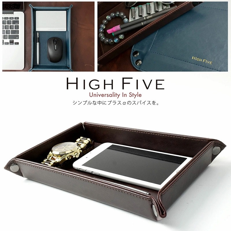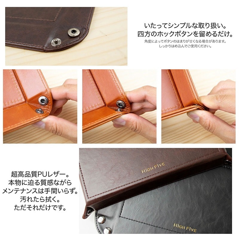 【12月10日限定ポイント30倍】HIGH FIVE たためるフェイクレザートレイ 長方形 お手入れしやすいPUレザー brown/ブラウン
