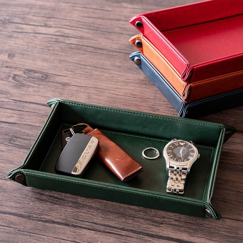 リビング、玄関、ベットサイド、書斎などどこにでも馴染む。長方形 レザートレー。