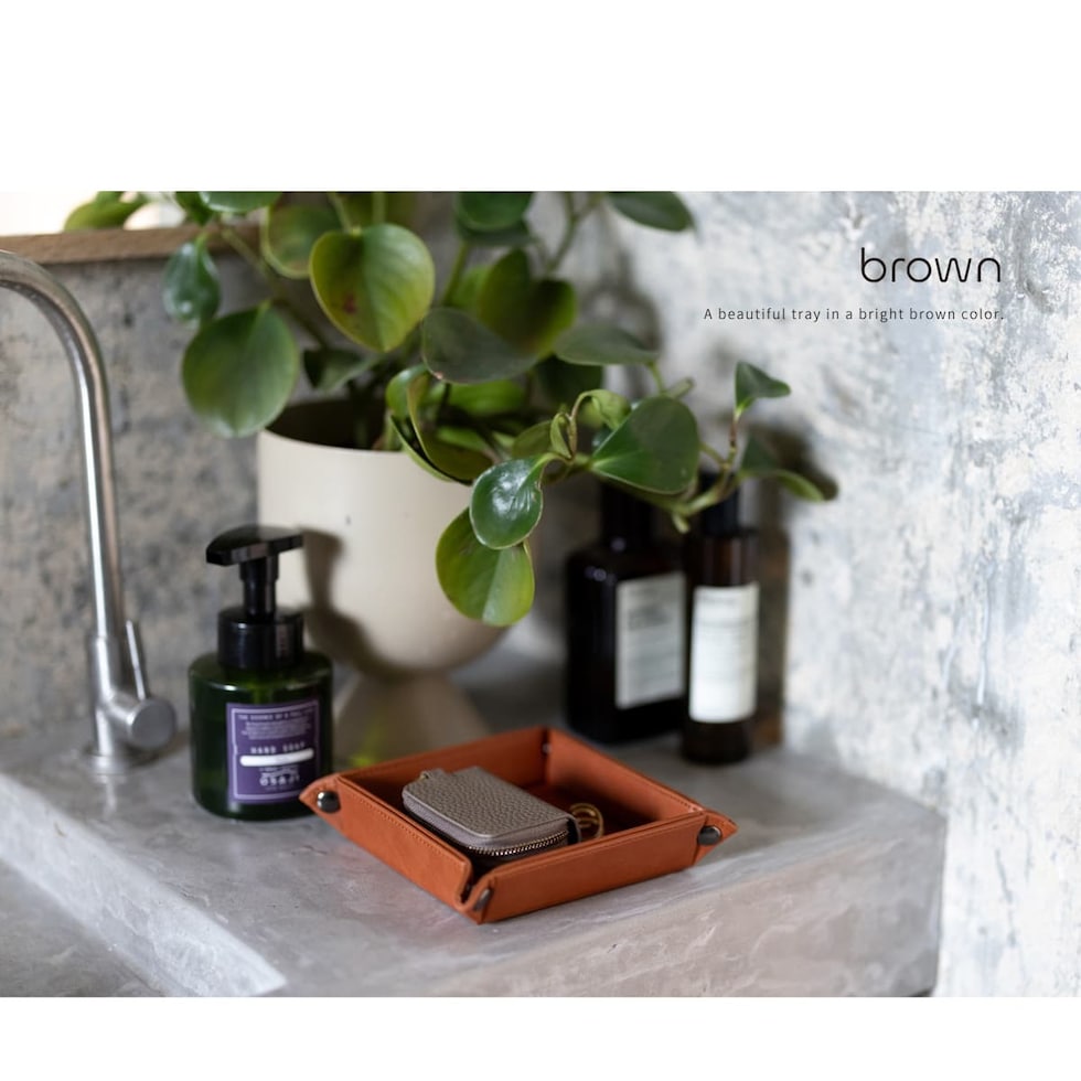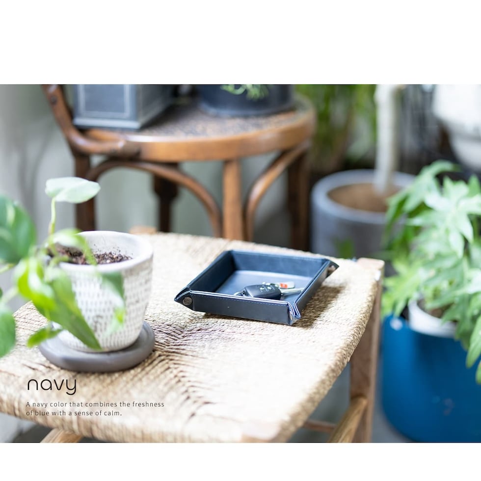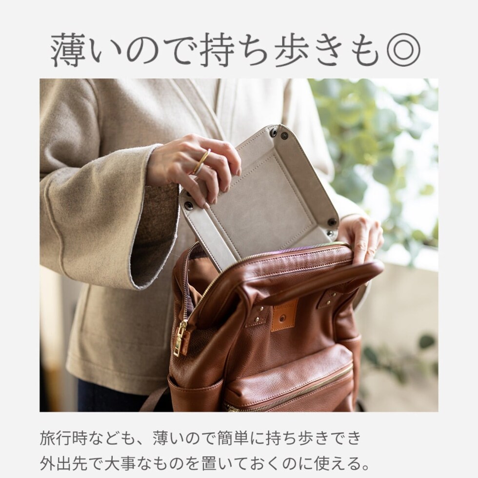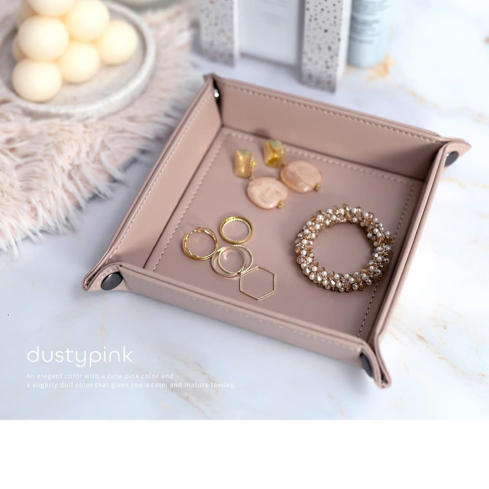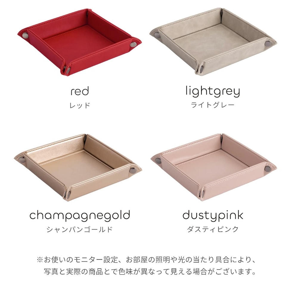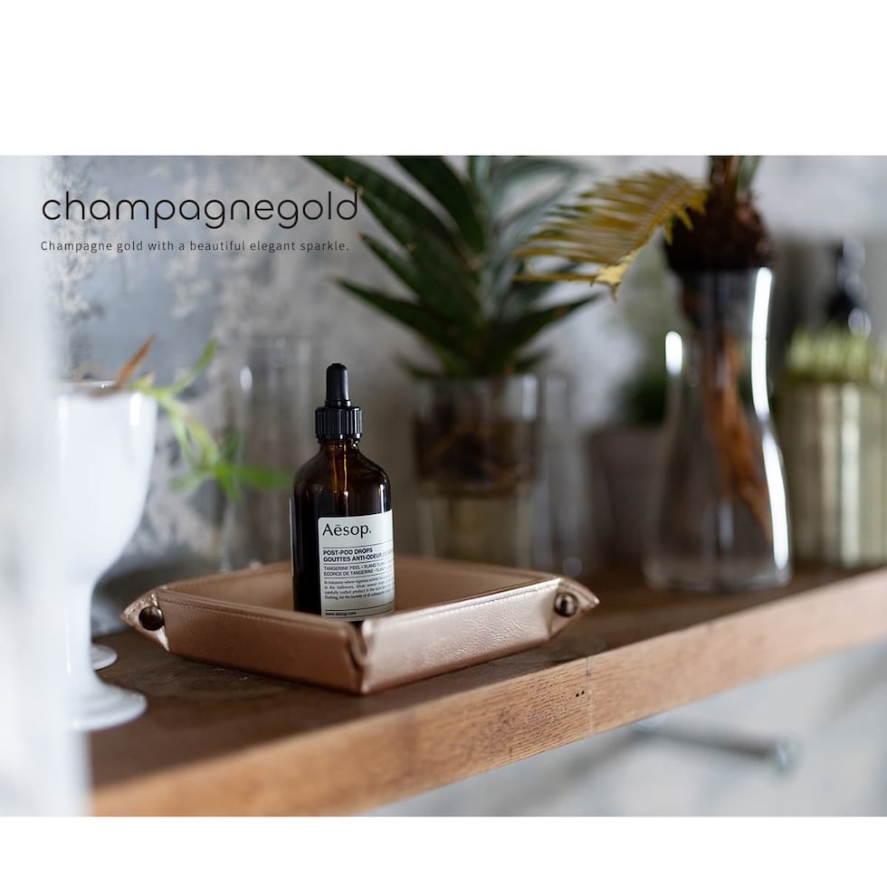 鍵やアクセサリー、小型のデジタル機器など、散らばりがちな貴重品の整頓にぴったりなレザー調トレイ。