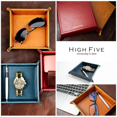 【12月10日限定ポイント30倍】HIGH FIVE たためるフェイクレザートレイ 正方形 お手入れしやすいPUレザー champagnegold/シャンパンゴールド